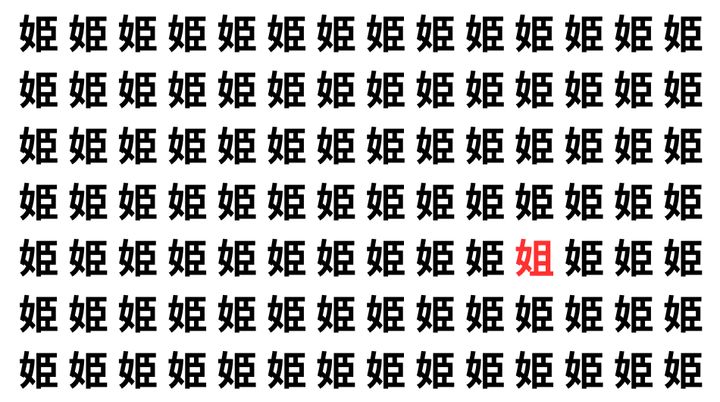 たくさんの「姫」の中に、よく似た別の漢字が1文字だけ隠れています。