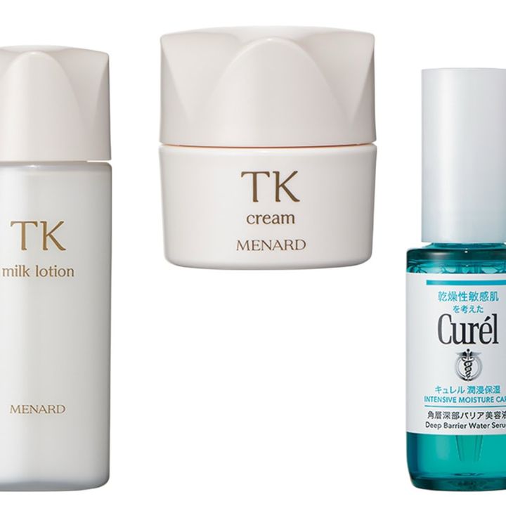 (右から)敏感肌が感じる刺激感とタイトジャンクションの関係を解明。キュレル 潤浸保湿 角層深部バリア美容液[医薬部外品] 30㎖¥4,950(編集部調べ・3月7日発売)/花王、顆粒層のバリア機能に着目し、ガーデニアエキスWを配合。TK クリーム 30g ¥4,400、同 ミルクローション 100㎖ ¥3,300(ともに2月21日発売)/メナード