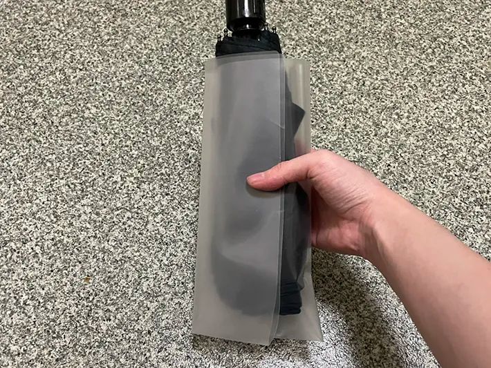 書類をまとめるための道具ですが、水に濡れても浸透しないので、濡れた折り畳み傘を入れても大丈夫そうです。