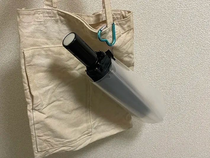 雨に濡れた後の折り畳み傘の置き場に困っていた筆者。ずっと手に持つのも邪魔ですし、かといってそのままカバンに入れるわけにもいきません。