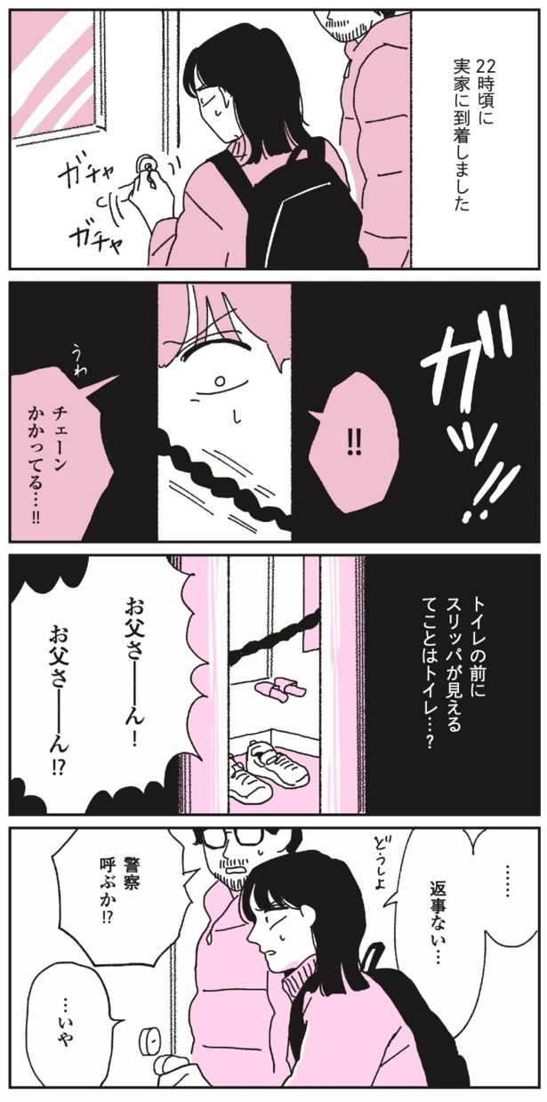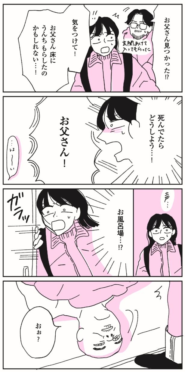 3. 風呂場で倒れている父を発見。実家の異様な状況に、かけつけた娘は動揺/父が全裸で倒れてた。②