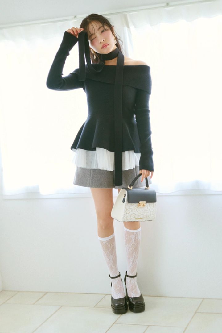 ストールつきぺプラムニットとチュールスカートのセット 9,900円/rienda(バロックジャパンリミテッド)