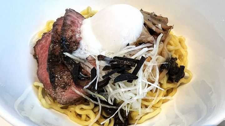 トリュフまぜそば。黒く見えるのが刻んだトリュフです…贅沢!