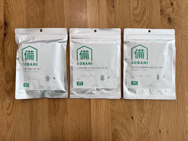 私が購入したのは、手袋型のボディシート、ミトン型の拭き取り化粧水、指にはめて使える歯磨きシートなど、入浴や洗顔ができない時でも“清潔を保つ”ことを助けてくれるアイテム。全て税込330円で購入できます。