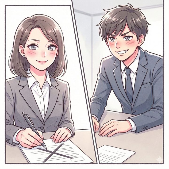 彼の誇らしげな笑顔は、後日届く通知を見た時にどう変わるのでしょうか。私は手元の評価欄に、迷わず大きな「×」を書き込みました。