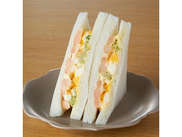 人気のたまご、ブロッコリー、海老を組み合わせた、見た目も鮮やかなサンドイッチです。