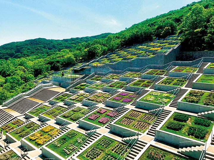 コンクリートで形作られた花壇「百段苑」。 Hearst Owned