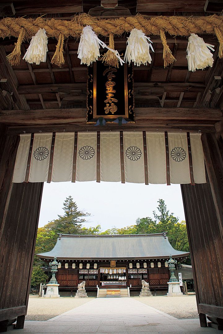日本最古の神社の一つとされる古社。『古事記』『日本書紀』に記された国生み伝承の主人公、伊弉諾尊(いざなぎのみこと)と伊弉冉尊(いざなみのみこと)を主祭神に祀(まつ)っています。境内には、かつて神宮を囲んだお堀の名残である神聖な「神池」や、樹齢900年を超える「夫婦大楠(めおとのおおくす)」など、神話と自然が厳(おごそ)かに共鳴する見どころが点在。四季折々に表情を変える境内の風景は、神話の世界に引き込まれるような体験を与えてくれます。