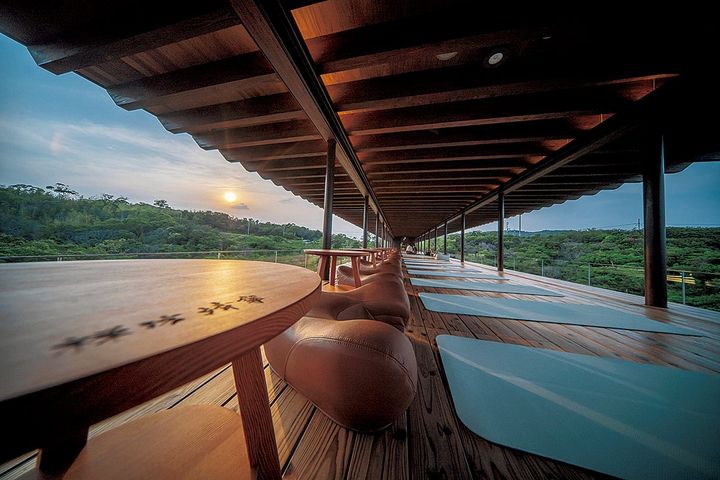 日本杉を格子状に組み合わせた全長100mのウッドデッキが象徴的な、建築家・坂 茂さんが手掛けた禅リトリート施設。四季折々の風景に包まれながら、瞑想(めいそう)やヨガを通して心と体を整えるリトリート体験が可能です。食事は、発酵醸造料理人・伏木暢顕さん監修の「禅坊料理」。旬の食材と発酵の力を生かし、体の内側から整える一皿です。