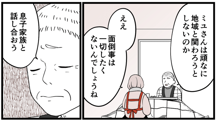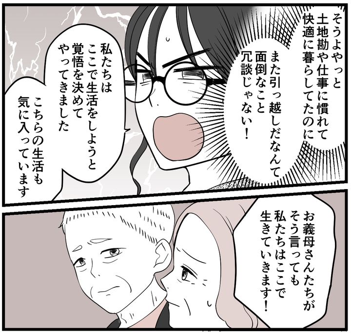 私は、こちらで暮らす覚悟を持って引っ越してきたこと、今の生活を気に入っていることをはっきりと伝えました。夫も息子も同じ気持ちで、引っ越すつもりはないと言いました。