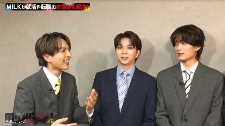 なお、M!LKメンバーが就活生になりきり、スペシャリストから就活のHow Toを学んだ就活生応援スペシャル企画は、2月17日深夜に放送された彼らのABCテレビ初冠番組『M!LKじゃん!』で行われた。“就活生M!LK”にX上は、「ビシッと決まってるスーツ! ビジュいいじゃん」「スーツ似合いすぎて滅」「M!LKのスーツ姿爆裂に好き」「わたしなら全員即採用させていただきます」「スーツのCM来たりしないかな? 広告やドーンと大きな看板が見てみたい!」などと大盛り上がりだった。