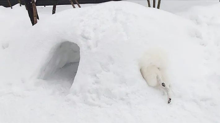 2. 雪のかまくらで遊ぶ犬、後ろ姿が? 「なんて罪深い」「顔をうずめたくなる」