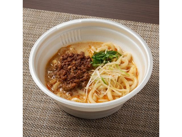 弾力のあるうどんと、まろやかなコクが感じられるごまクリーム担担ソースを組み合わせました。具材として肉そぼろ・水菜・白髪ねぎ・ラー油をトッピングしています。 ※宮崎県、鹿児島県では取り扱いがございません。