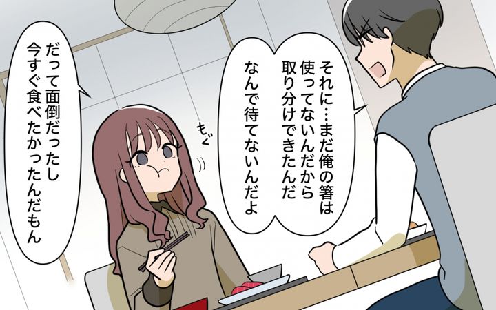 しかし妻は夫の料理を直箸で奪い、嫌がると「器が小さい」と責めるのです。