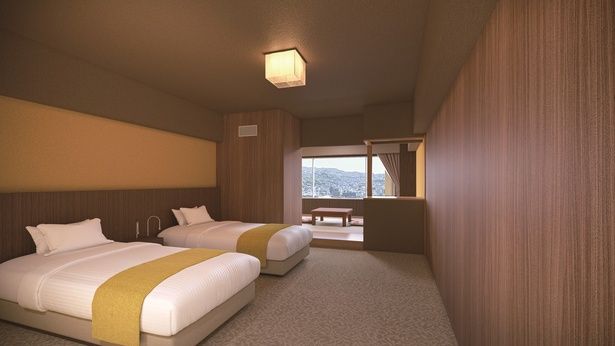 「和色」をテーマにした客室デザイン。ベッド派にうれしい和洋室タイプ