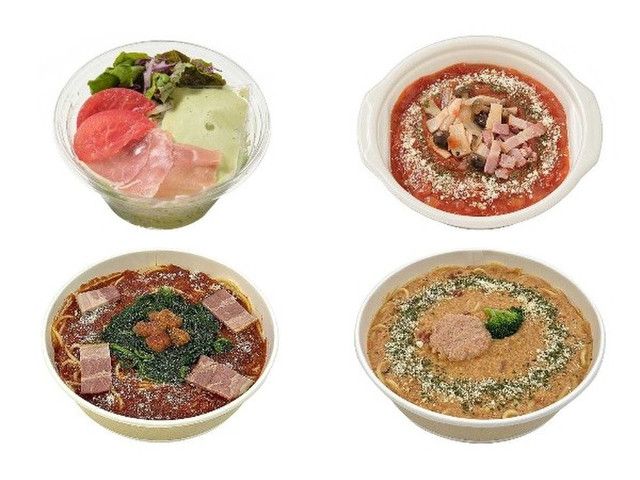 今週新発売のコンビニパスタまとめ!『トマトと生ハムのバジルパスタサラダ』、『きのことベーコンのトマトスープパスタ』など♪