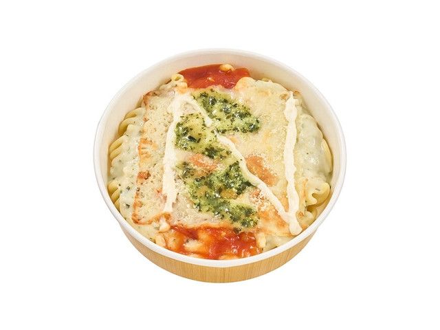 自家製の生パスタに、バジルクリームソースとトマトソースをトッピングしたグラタン風パスタです。 取り扱い店舗 全エリア