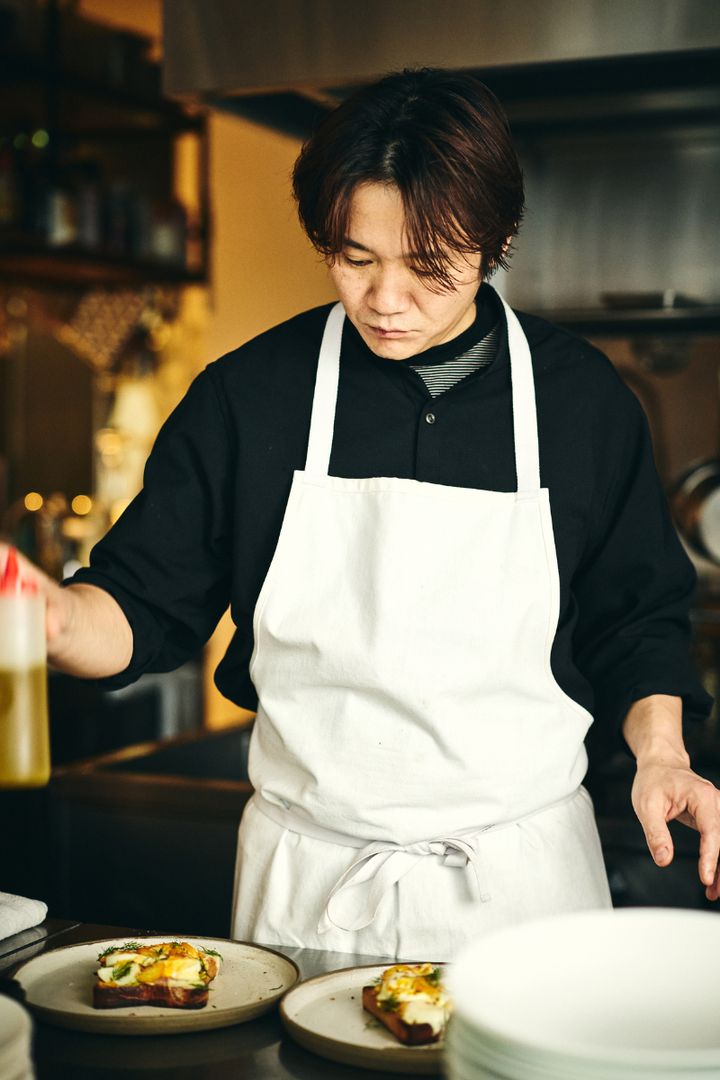 今回トーストレシピを披露した西恭平さんは、フランスや東京・渋谷のレストランで研鑽を積んだ実力派。東京・日本橋兜町の「Neki」で供されるのは、フレンチの技法に和のハーブや発酵調味料などを巧みに掛け合わせた、枠にとらわれない西さんらしい自由な発想の一皿だ。