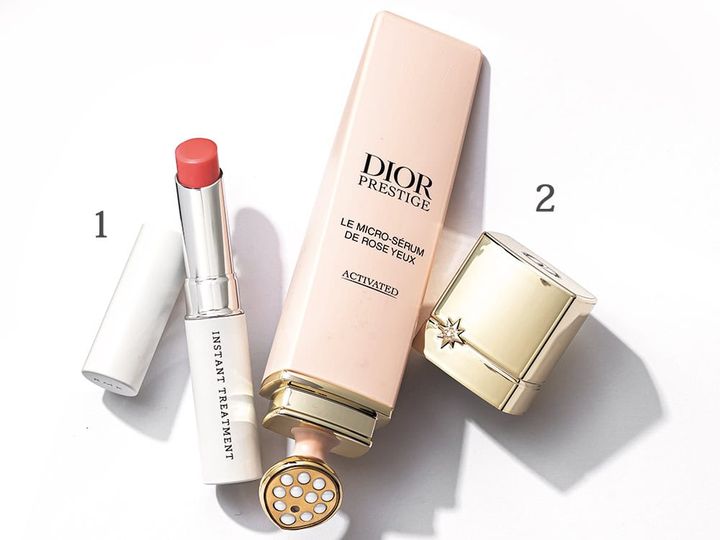 1. RMK インスタント トリートメントスティック ¥4,180/RMK Division、2. プレステージ マイクロ セラム ユー 20㎖ ¥30,800/パルファン・クリスチャン・ディオール