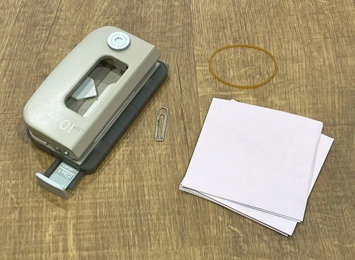 メモに使う紙の準備ができたら、パンチを使って、穴を2つ開けます。