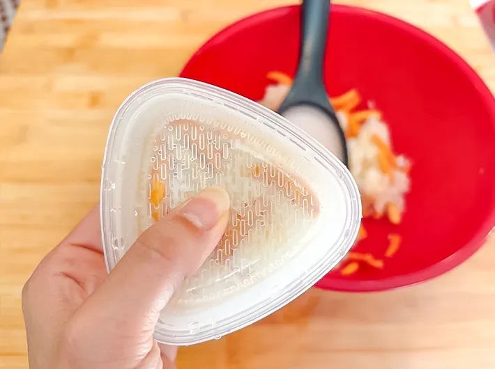 筆者は、市販のおにぎり型に入れて、握ってみました。