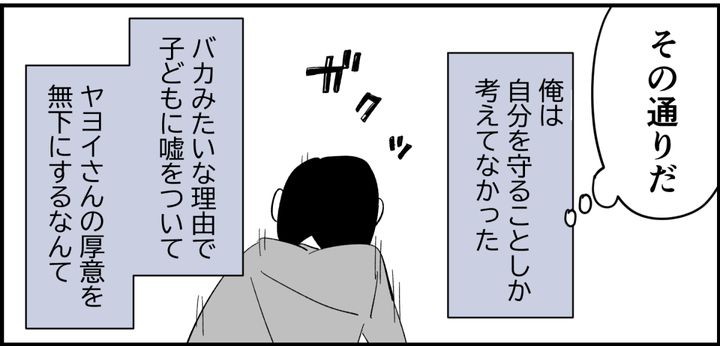 劣等感から子どもたちに嘘をつき、ハヅキにその薄っぺらい虚栄心をすべて見破られた。