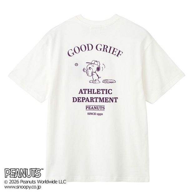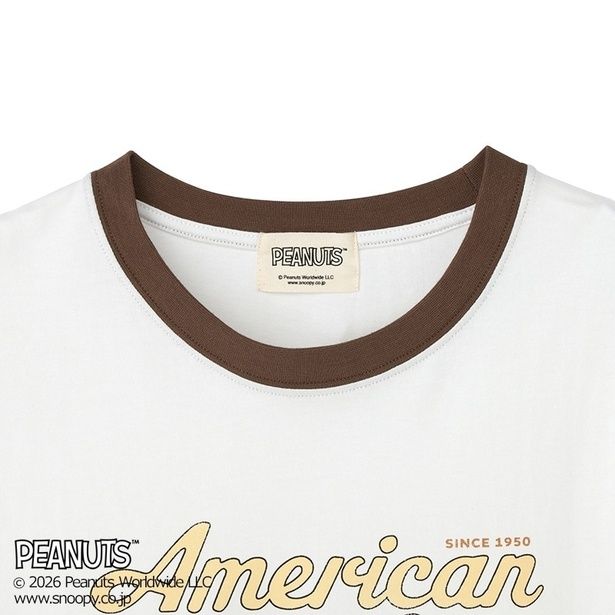 ヘザーグレー地にシンプルな線画で描かれたスヌーピーが映える「Tシャツ アッシュ」(3960円)と「Tシャツ グレー」(3960円)、えりのリブだけ色が異なる「カウボーイTシャツ オフホワイト」(3960円)は、ヴィンテージなムードが持ち味。