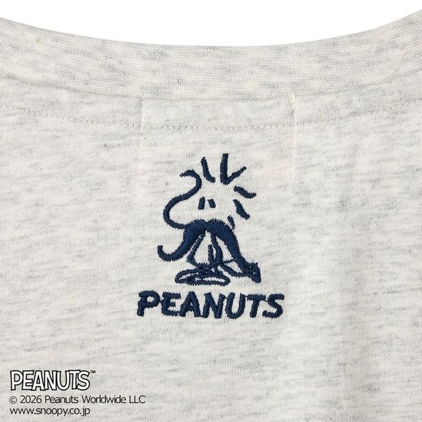 「Tシャツ サガラ刺しゅう ブラック」(3960円)と「Tシャツ サガラ刺しゅう アッシュ」(3960円)は、胸元にあしらわれたもこもこのスヌーピーが最大の魅力。ふさふさの毛並みみたいでとにかくかわいい!