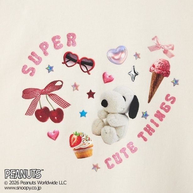 ブラックは向かい合うスヌーピーとアンディ、アッシュは真っ赤なハートを浮かべるスヌーピーと、ベースカラーによりワンポイントのデザインが異なる。さりげないリンクコーデに取り入れてみては?