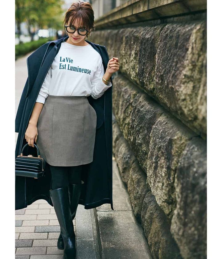 40代が「ロンT」で垢抜けるコツは?“女っぽスカート”合わせが大正解〈コーデ2選〉