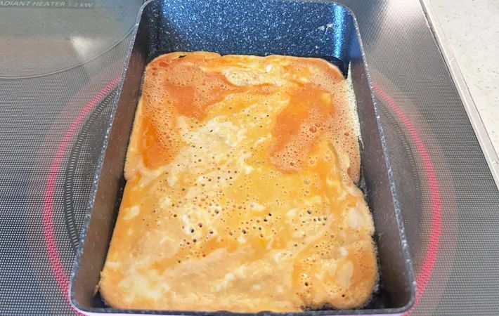 2.卵液を流し込んで焼く