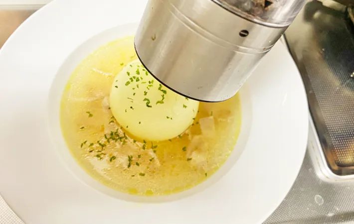 タマネギを切らずに調理できるだけでなく、あっという間に華やかなスープが完成するこのレシピ。