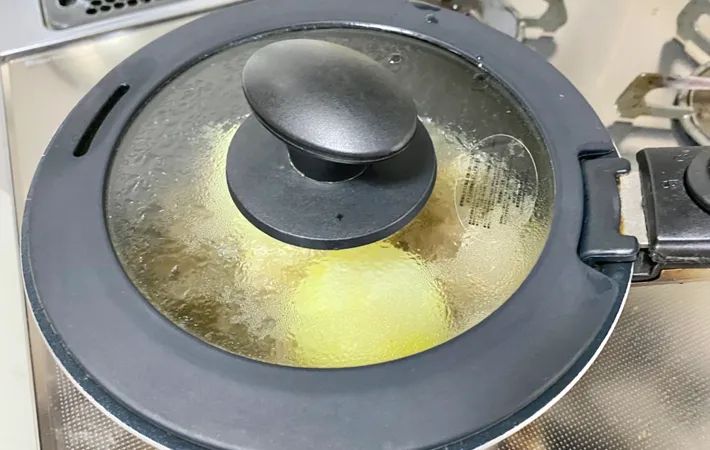 蓋をして、弱火で3分ほど煮込みましょう。