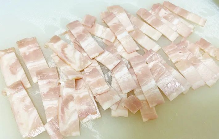 ベーコンは、細めの短冊切りにします。
