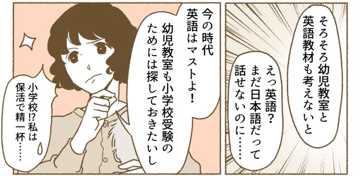 しかし習い事の話になると一転、ナオミさんは熱く語り出したのです。赤ちゃんのうちにいかに刺激を与えてあげられるかで、その子の一生が決まる……。そう思うと、なんの情報も収集せずにいた自分が恥ずかしくなり、息子に対して申し訳なくなってしまいます。