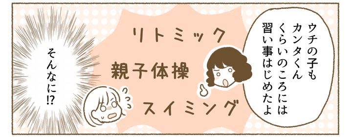 聞くと、ナオミさんのお子さんのレイくんは、今のウチの子くらいの月齢でリトミックや親子体操、スイミングなどをはじめたのだとか……。私は、ナオミさんの勢いに少し気圧されてしまいました。
