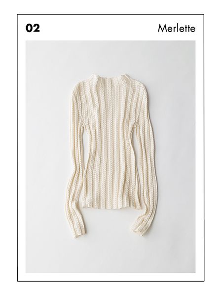 ハンドメイド感の漂うぬくもりのある風合いで、レースがナチュラル仕様に。スマートな高めのネック。 アイボリーニットトップス/マーレット(LITTLE LEAGUE INC.)