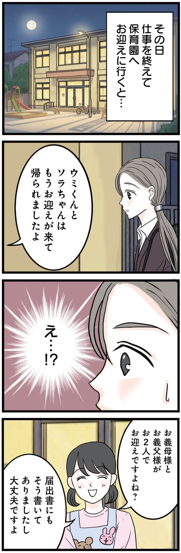 3. 退勤後に保育園に行くと、義両親がすでに迎えに来ていた!? 強すぎる孫への執着/結婚したらゴミでした④