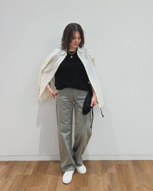 アウターがいらない時期には「ゆったりめのシャツ」をON。羽織りとして使えるので季節の変わり目にもってこいです。