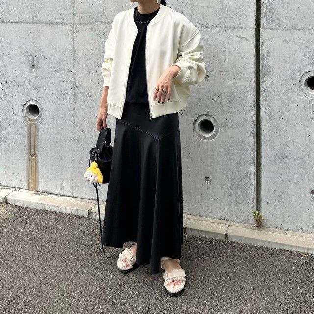 メンズライクな「ブルゾン」は黒Tシャツにうってつけ。スナップのようなチュール生地や白色のアイテムを選ぶと春っぽさがグンとアップします。さらにブルゾンが持つ冬感が消えて軽やかな仕上がりに。