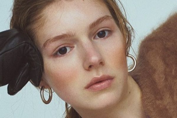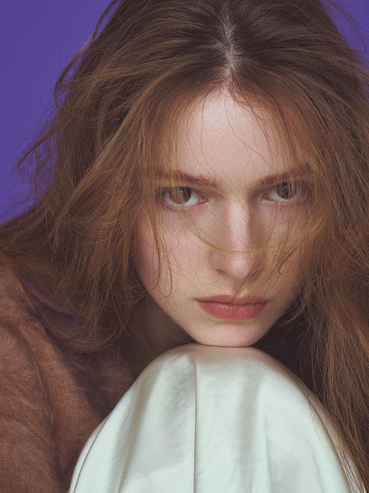 ふわふわのカシミヤニットのように、やわらかく上品な女性像をめざしたい。そんなムードをあと押しするのは、ニットと呼応するニュアンスブラウンのフェイスパウダー。頬のやや下に広く薄くぼかしたら、しなやかな知性が宿る。