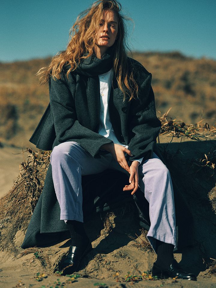 甘くも辛くもなく、パステルカラーの中でも中間的な位置にいるラベンダーは、グレーなどニュートラルな色と波長が合う。ほどよさに調整できる、どっちつかずな色なら、ほっこりしがちな冬素材のボトムをクールに落とし込める。
