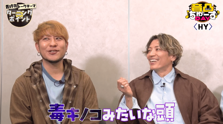 名嘉さんは「誰が毒キノコや」とツッコミつつも、「マッシュルームみたいな…もうちょっと酷いやつでしたね」と自らの高校時代を告白! 昼食に誘われたのがきっかけで仲良くなった2人。こうした出会いから、HYの絆が結ばれていったようです。