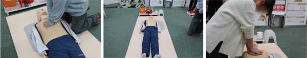 災害時には建物の倒壊や転倒事故などによって、負傷者が発生する可能性が高いです。そうした場面で、救急車が到着するまでの間に周囲の人がどのような行動を取るかが、生死を分けるカギになります。応急救護体験では、心肺蘇生法を教わりました。
