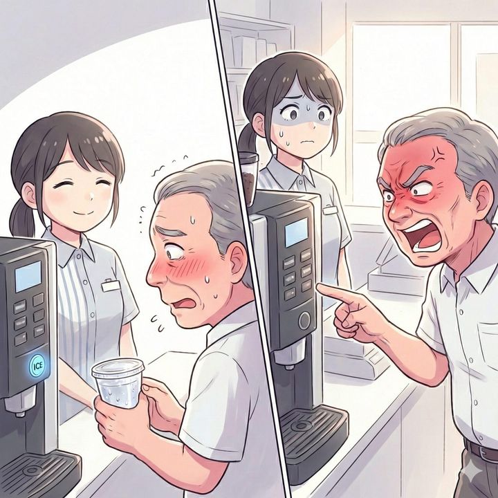 気まずそうに視線を泳がせる男性。私はあえて間違いを追及せず、笑顔で新しいカップを用意しました。