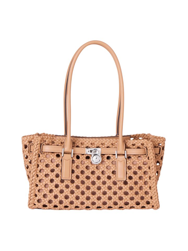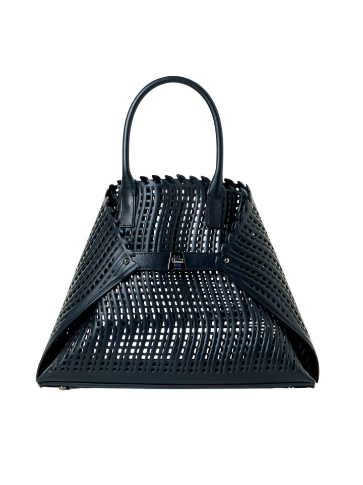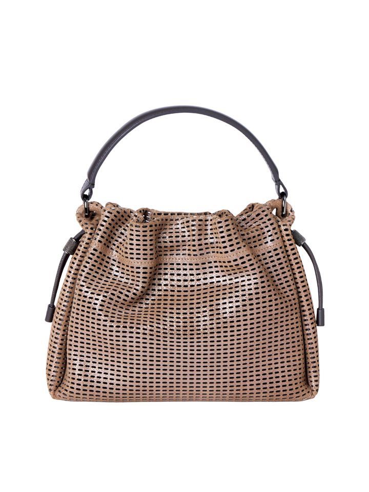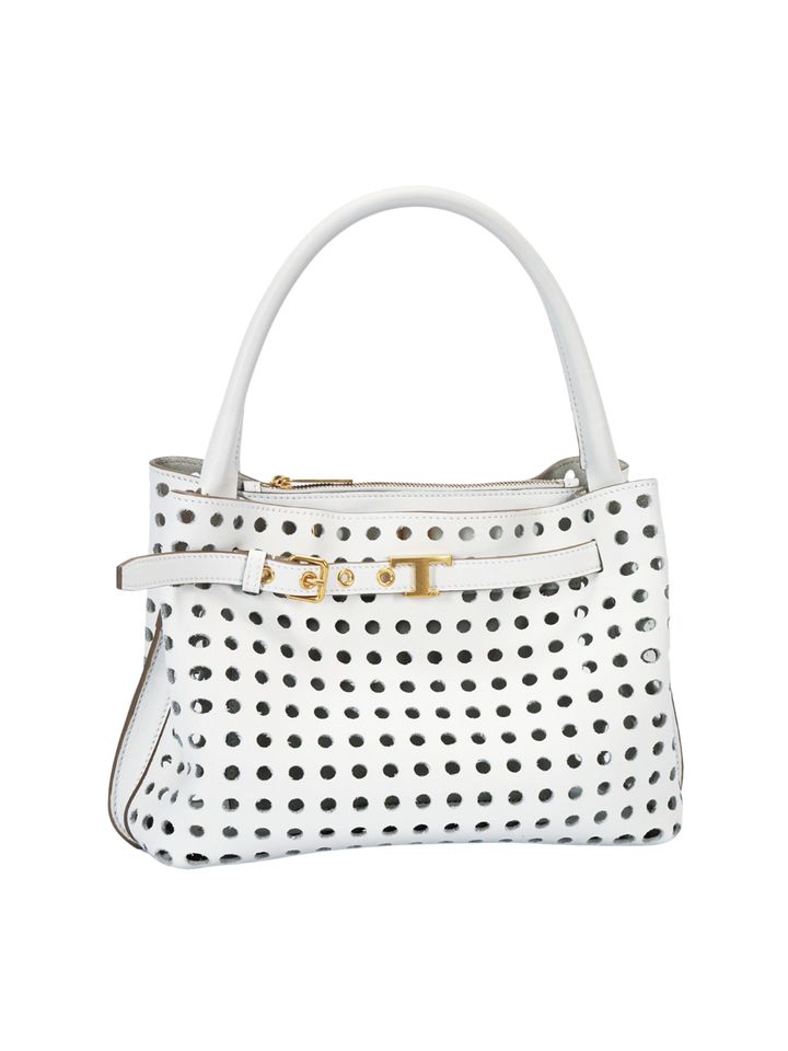クリーンなハンドバッグに、パンチングを施し抜け感をプラス。