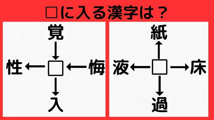 3. 【漢字パズル】覚□、悔□、□性、□入 □に入る漢字は何…?