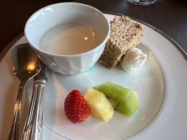 デザートの杏仁豆腐とシフォンケーキにフルーツ♪