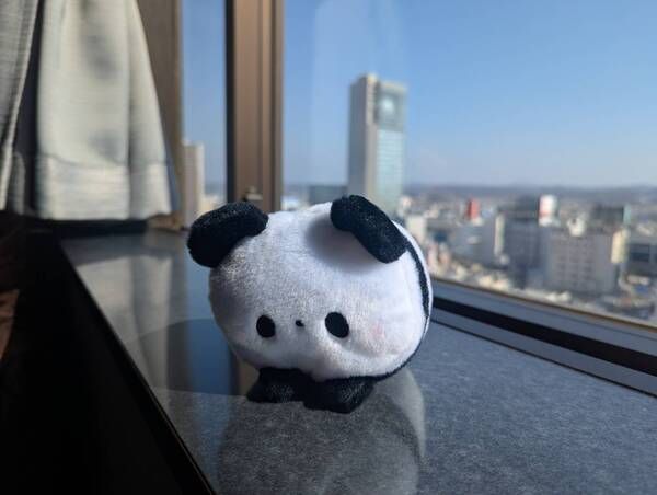 お子様連れの方にプレゼントされたパンダのぬいぐるみ