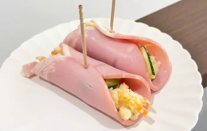 ハムで包むことで、ポテトサラダが一口サイズにまとまるので、弁当やパーティーでも食べやすくなりますよ。